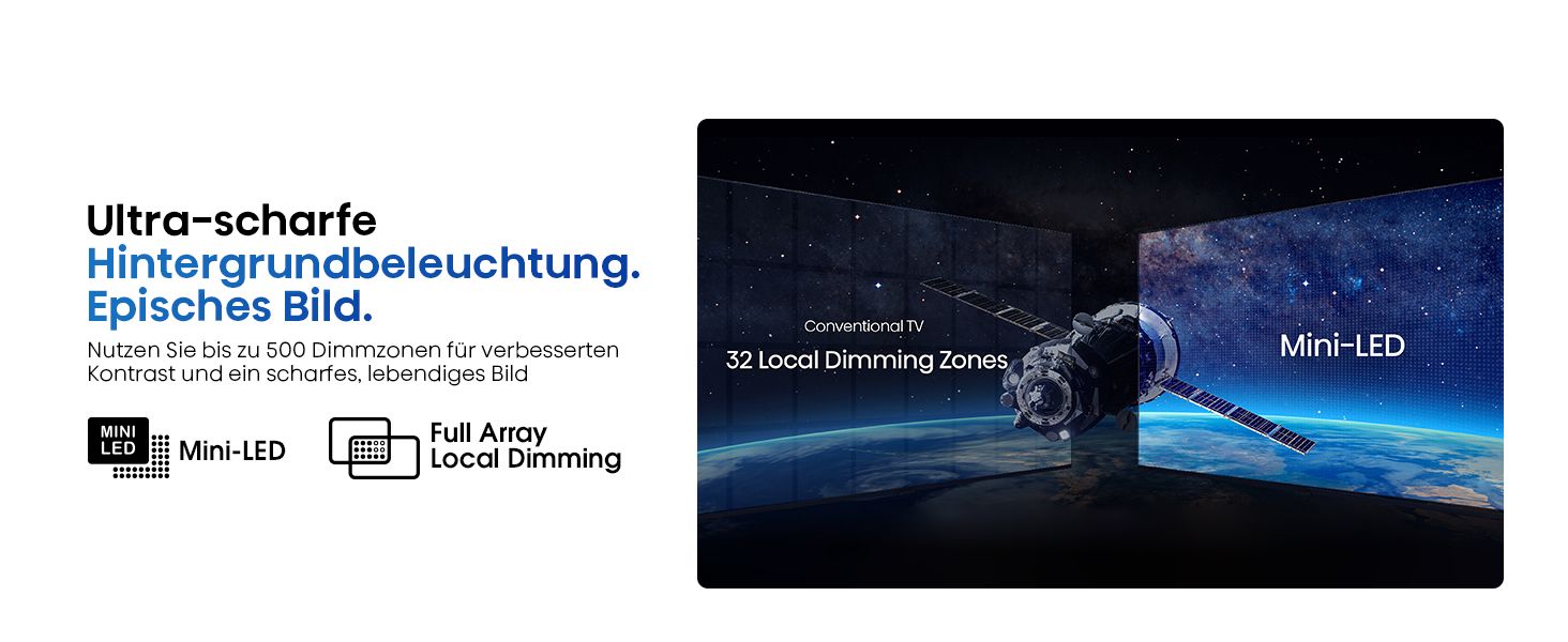Erleben Sie ein unvergleichliches Fernseherlebnis mit der patentierten Hisense 100U7KQ 4K MINI LED ULED® Technologie für beindruckende Kontraste, tiefen Schwarztönen und verbesserten Helligkeitswerten. Das perfekte Zusammenspiel aus der Hi View Engine, basierend auf einem Quad Core Prozessor, Local Dimming und Wide Color Gamut mittels Quantum Dot Technologie sorgen für erweitertes Farbvolumen und Detailreichtum.