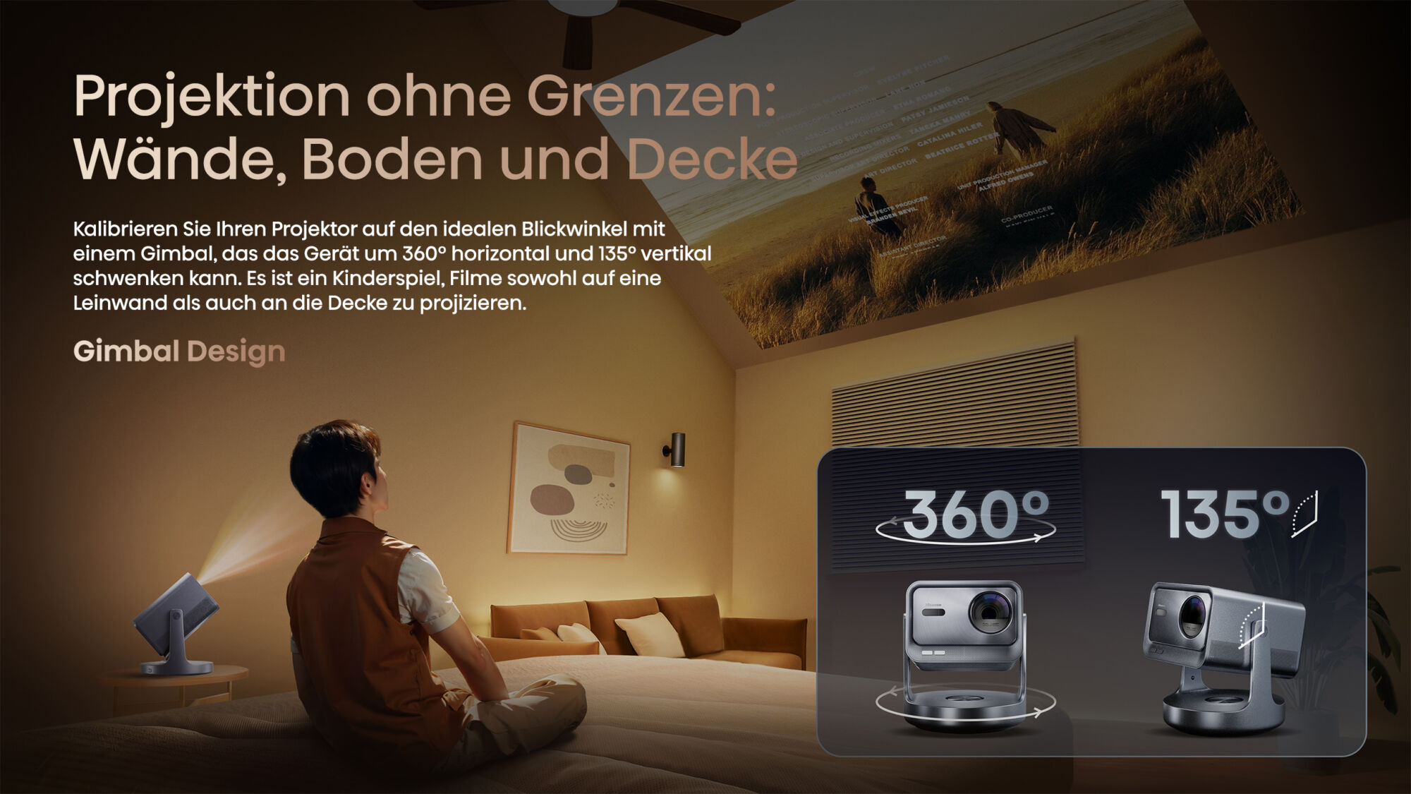Beim Sound setzt der C2 Pro auf ein hochwertiges 2.0 JBL Soundsystem, das für klaren und ausgewogenen Klang sorgt, jedoch ohne den zusätzlichen Subwoofer des C2 Ultra auskommt. Wie beim C2 Ultra sorgt der 360-Grad drehbare und 135-Grad neigbare Standfuß für eine flexible Aufstellung des Projektors.