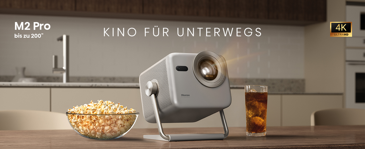 Der Hisense M2 Pro ist ein kompakter und leistungsstarker RGB-Laserprojektor, der sich ideal für den flexiblen Einsatz im Wohnzimmer, auf Reisen oder im Büro eignet. Mit seinem durchdachten Design, einem integrierten Gimbal für die flexible Ausrichtung und dem mitgelieferten Transportcase ist der M2 Pro sofort einsatzbereit – überall dort, wo brillante Bildqualität gefragt ist.