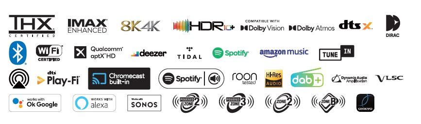 Der Onkyo TX-NR7100 9.2-Kanal-AV-Receiver mit THX®-Zertifizierung lässt sich problemlos in Ihr bestehendes Smart Home-Ökosystem integrieren, einschließlich Apple Airplay, Alexa, Google-Apps und mehr. Sie erhalten ein hochgradig leistungsfähiges und kompatibles Netzwerkgerät, das nahtlos in Ihrem Multiroom-Ökosystem betrieben werden kann.