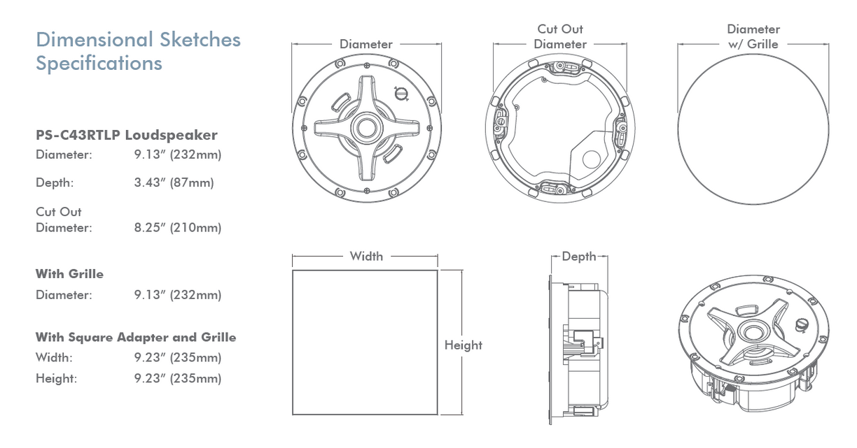 Das PS-C43RTLP verfügt über ein versiegeltes Metallgehäuse mit rückseitig und seitlich ausbrechbaren, abnehmbaren Euroblock-Anschlüssen mit Durchschleifung und seismischer Befestigung. Darüber hinaus ist das Sonance PS-C43RTLP für UL 1480 und UL 2043 zertifiziert.