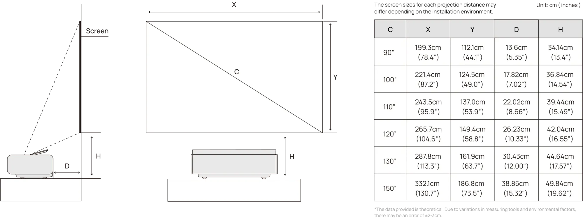- Ultra-Kurzdistanzprojektion (0,177:1 Throw Ratio): Dank der fortschrittlichen UST-Technologie kann der Aura 2 aus kurzer Distanz ein Bild von bis zu 150 Zoll projizieren, ohne dass eine komplizierte Installation erforderlich ist.