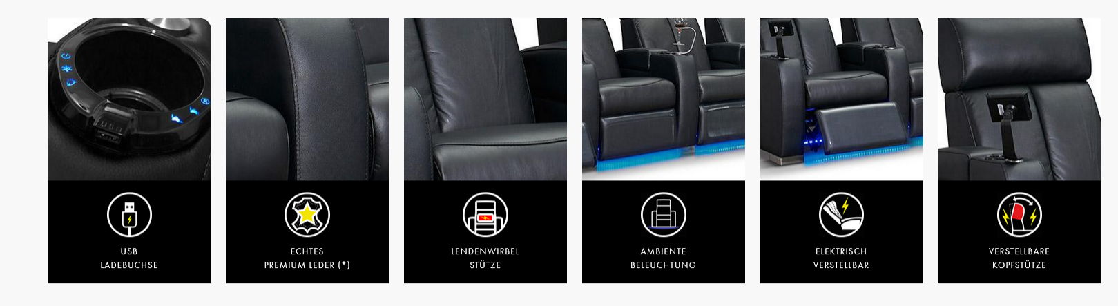 Selbst die besten Großraumkinos können diesen Luxus nur selten anbieten. Ab jetzt für Ihr Zuhause erhältlich. Auf Wunsch auch elektrisch verstellbar.
