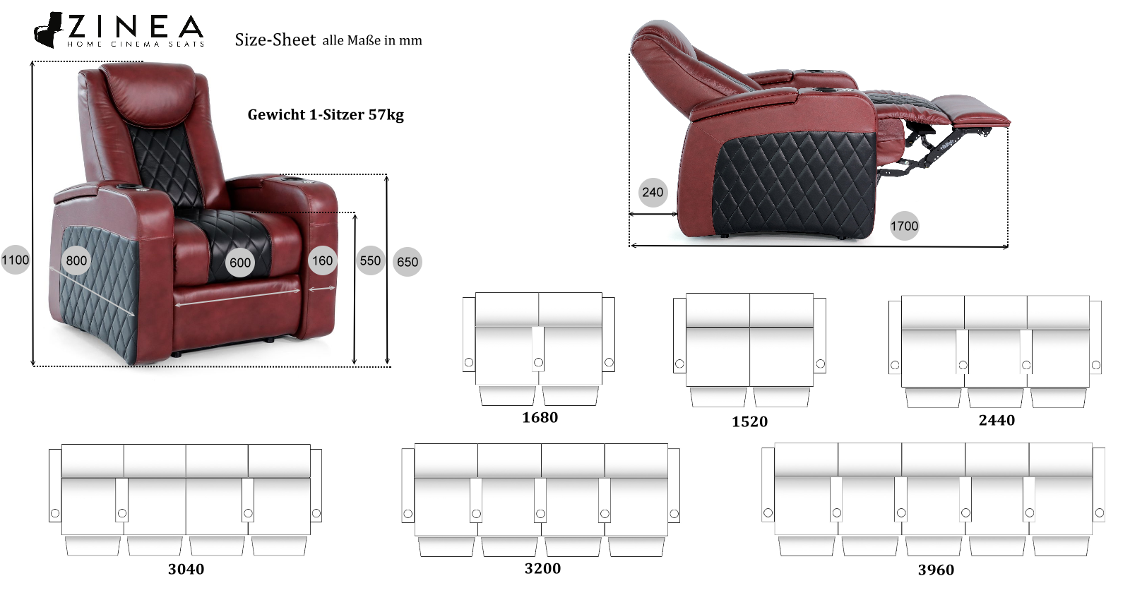 Schreiben Sie die erste Rezension für „Zinea Kinosessel Queen | 4er | Leder“