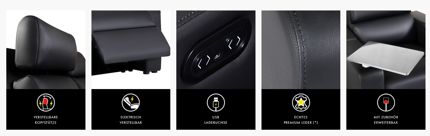 - Elektrisch verstellbare Kopflehne: Über ein Bedienfeld in der Armlehne einstellbar, bietet sie optimalen Komfort für Ihren Kopf und Nacken.