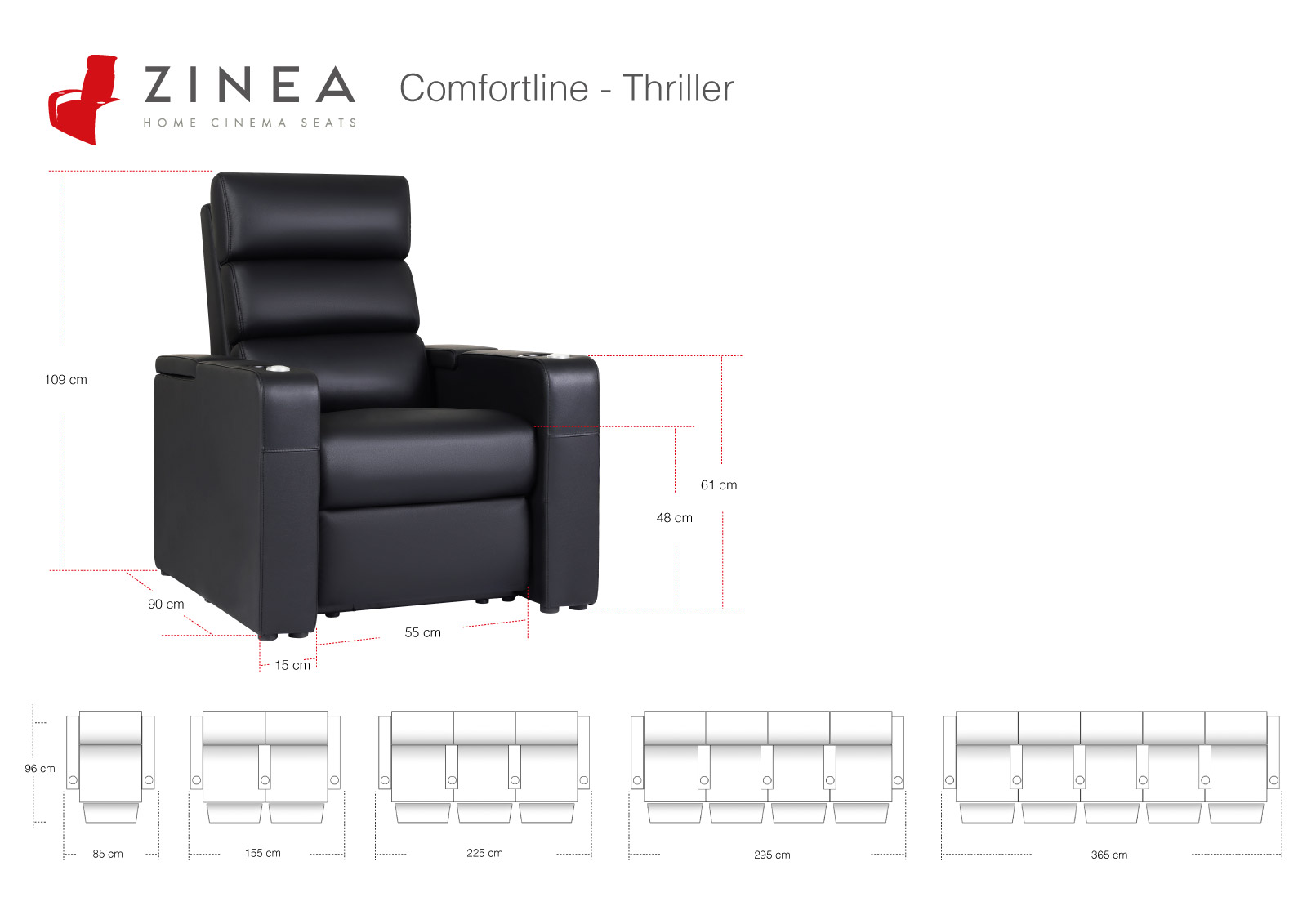 Entdecken Sie den „Thriller“ aus der Comfortline-Kollektion – ein Meisterstück, das Ihr Heimkinoerlebnis auf ein neues Niveau hebt. Mit seinem zeitlosen und eleganten Design ist dieser Sessel ein wahrer Blickfang, der jedes Interieur bereichert. Der Thriller zeichnet sich durch seine komplette elektrische Verstellbarkeit aus, die Ihnen erlaubt, die Kopf-, Bein- und Rückenlehne ganz nach Ihren Wünschen anzupassen. Hergestellt aus der hochwertigsten Lederqualität, die normalerweise den Highline Modellen vorbehalten ist, bietet dieser Sessel einen unvergleichlichen Komfort und Luxus.